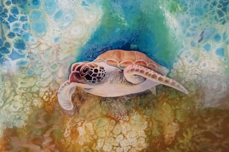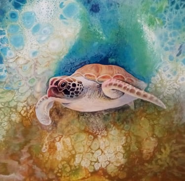 Sea Turtle, acrylic and epoxy, 16 X 20